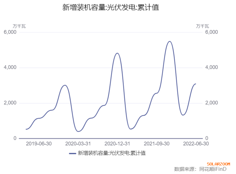 如圖所示,今年上半年光伏發(fā)電新增裝機(jī)容量已超過(guò)2019年全年的水平