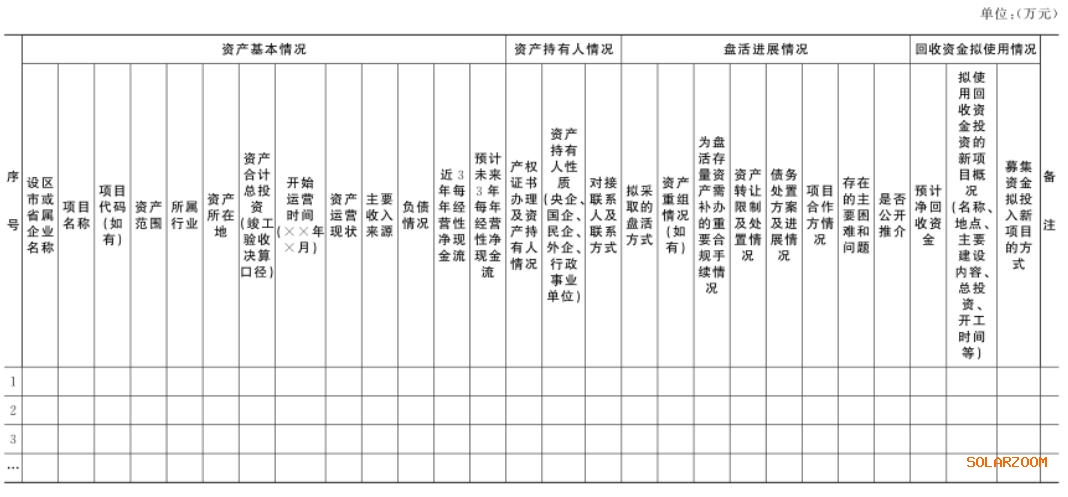 (二)建立資產(chǎn)臺(tái)賬。各地、各有關(guān)部門要在全面摸清存量資產(chǎn)底數(shù)的基礎(chǔ)上,積極篩選具備一定盤活條件的存量項(xiàng)目,按照附表格式分地區(qū)、分領(lǐng)域建立存量資產(chǎn)臺(tái)賬。省發(fā)展改革委匯總各地、各有關(guān)部門篩選出的具備盤活條件的項(xiàng)目,建立全省盤活存量資產(chǎn)臺(tái)賬,實(shí)行動(dòng)態(tài)管理。(省發(fā)展改革委牽頭,省財(cái)政廳、省自然資源廳、省住房城鄉(xiāng)建設(shè)廳、省交通運(yùn)輸廳、省水利廳、省文化和旅游廳、省國資委、省管局等有關(guān)部門按職責(zé)分工負(fù)責(zé)。完成時(shí)限:2022年12月底前)