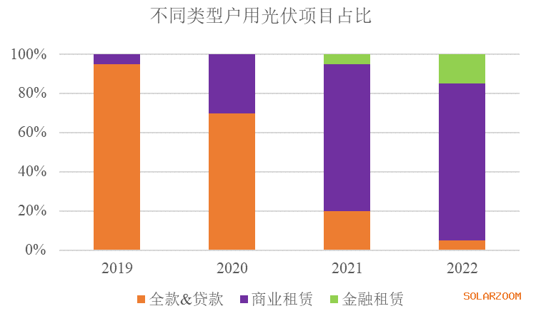 圖:最近幾年不同類型戶用光伏項(xiàng)目占比