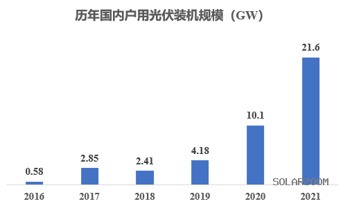 2019年以來,戶用光伏被給予單獨(dú)的補(bǔ)貼,得到快速的發(fā)展。從2018年開始,裝機(jī)規(guī)模幾乎每年翻一番,詳見下圖。